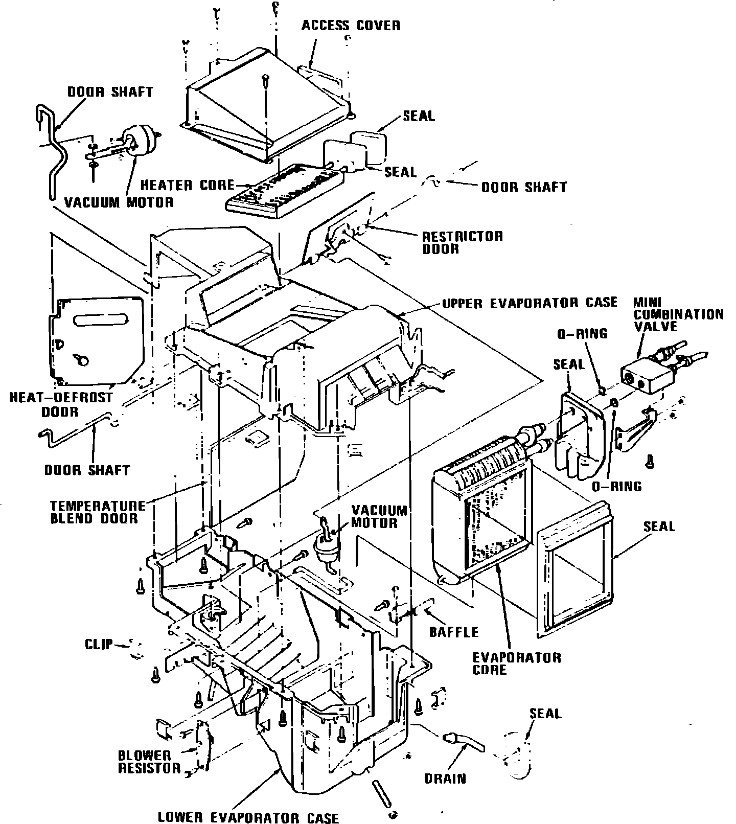 18. Remove heater core and seals from evaporator case.