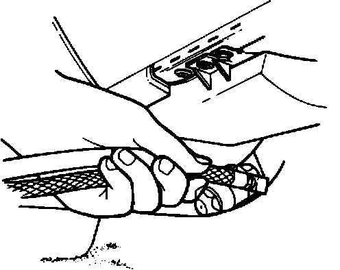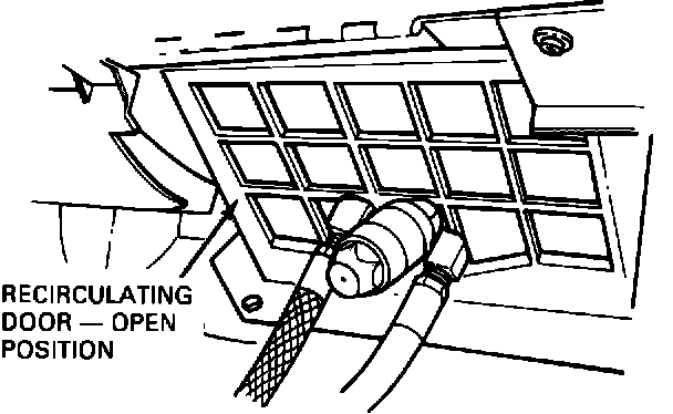 NOTE: For vehicles which have limited access to the recirculate air inlet opening an alternate method may be used. Set the system for panel air with outside airflow (NORM A/C). Spray the remainder of the disinfectant into the A/C system through the outside air inlet opening at the cowl. Point disinfectant spray toward center of blower wheel if visible; otherwise, direct spray toward center of airflow path.