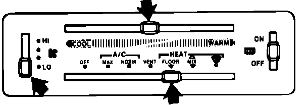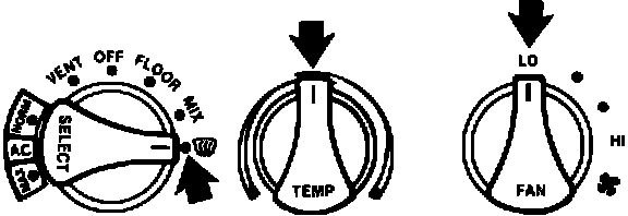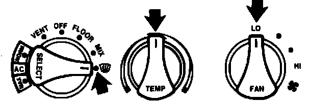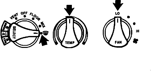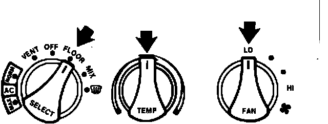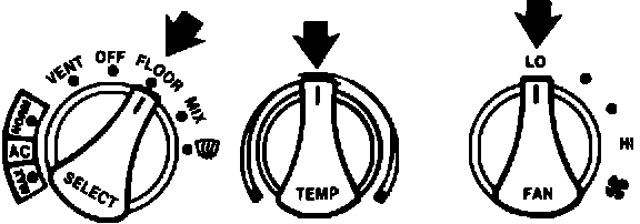 7. Repeat Step 6 with the A/C system still at the lowest blower speed but set for floor airflow (HEAT or FLOOR).