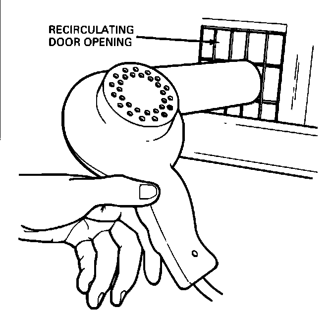 11. Dry the A/C system completely by placing a 1500 watt hot air gun at the recirculate air inlet. Operate the A/C system on high blower for 1/2 hour. Place the hot air gun at outside air inlet if alternate method was used to apply the disinfectant.