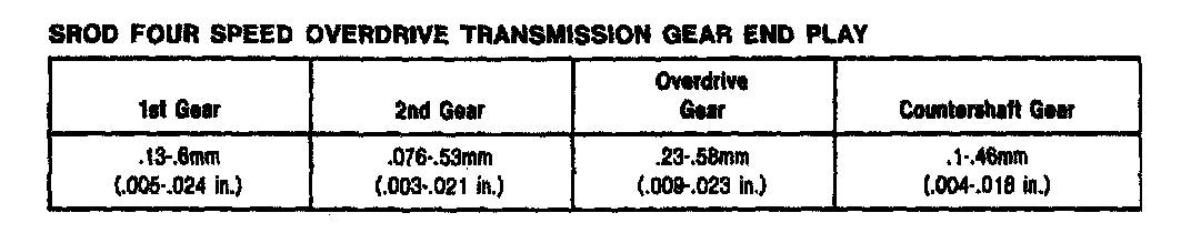 SROD 4-spd M/T, Gear End Play: