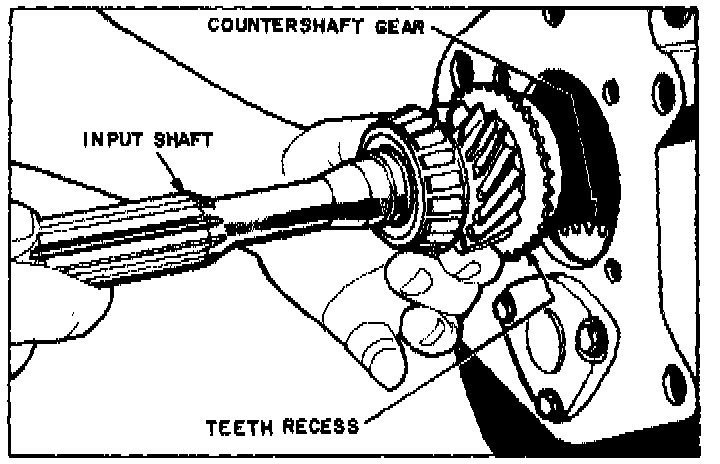 18. Rotate input shaft to position teeth recess toward countershaft gear, then remove input gear from case.