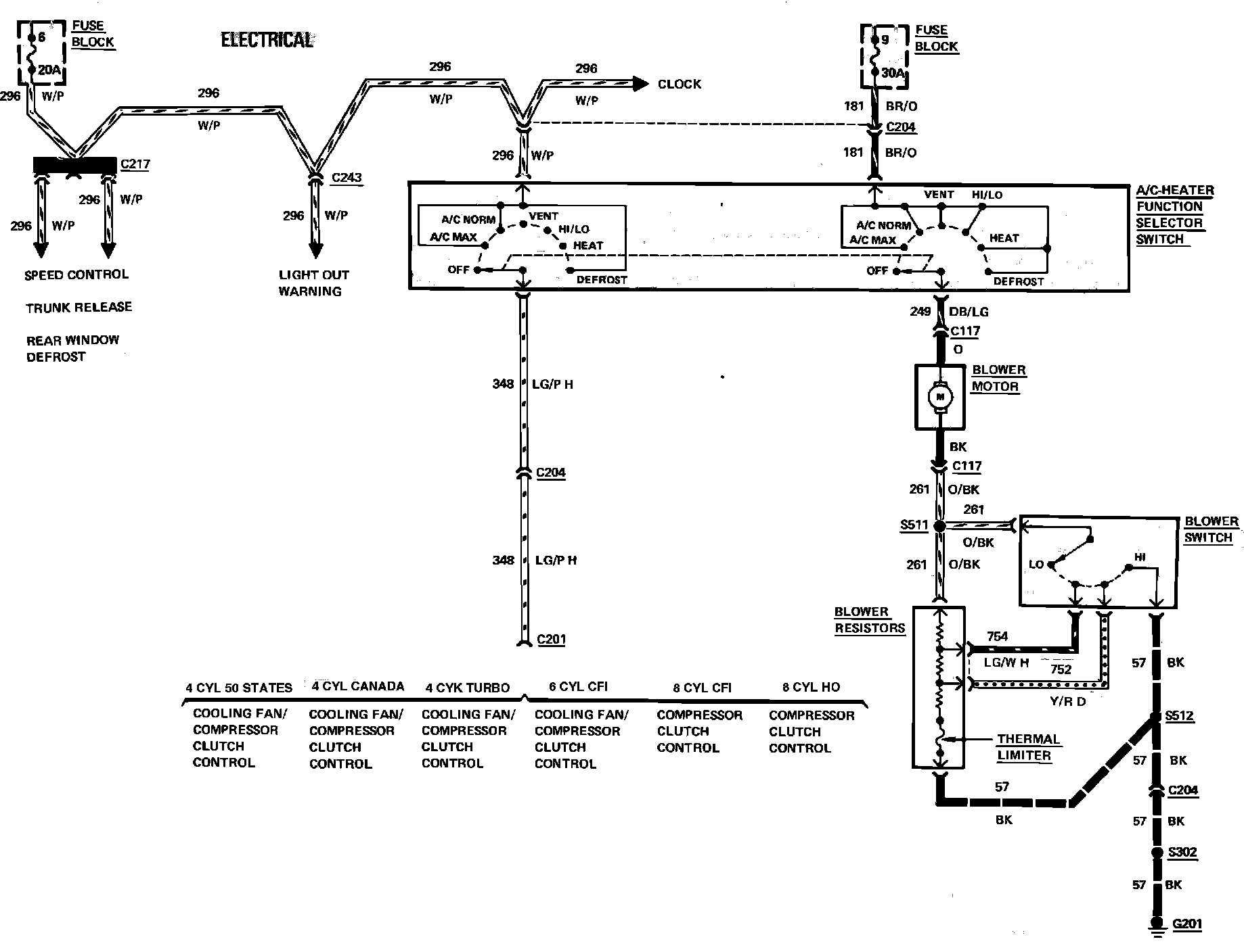 Fig. 14 Air conditioning & heater wiring circuit. 1983-84 Capri & Mustang: