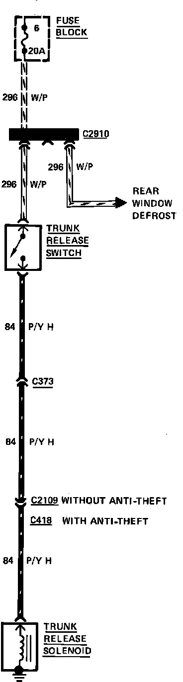 Fig. 97 Trunk Release Wiring Circuit. 1983 Cougar & Thunderbird: