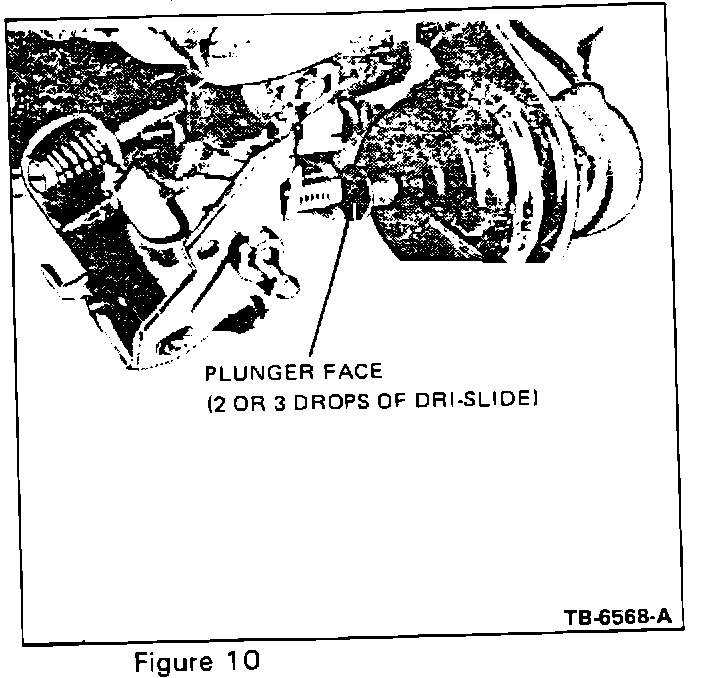 4. Apply 2 or 3 drops of Dri-Slide (Part No. E2SU-19553-A) to contact surface of the solenoid kicker plunger (Figure 10). Allow the Dri-Slide to dry, then cycle the throttle several times to recheck freedom of movement.