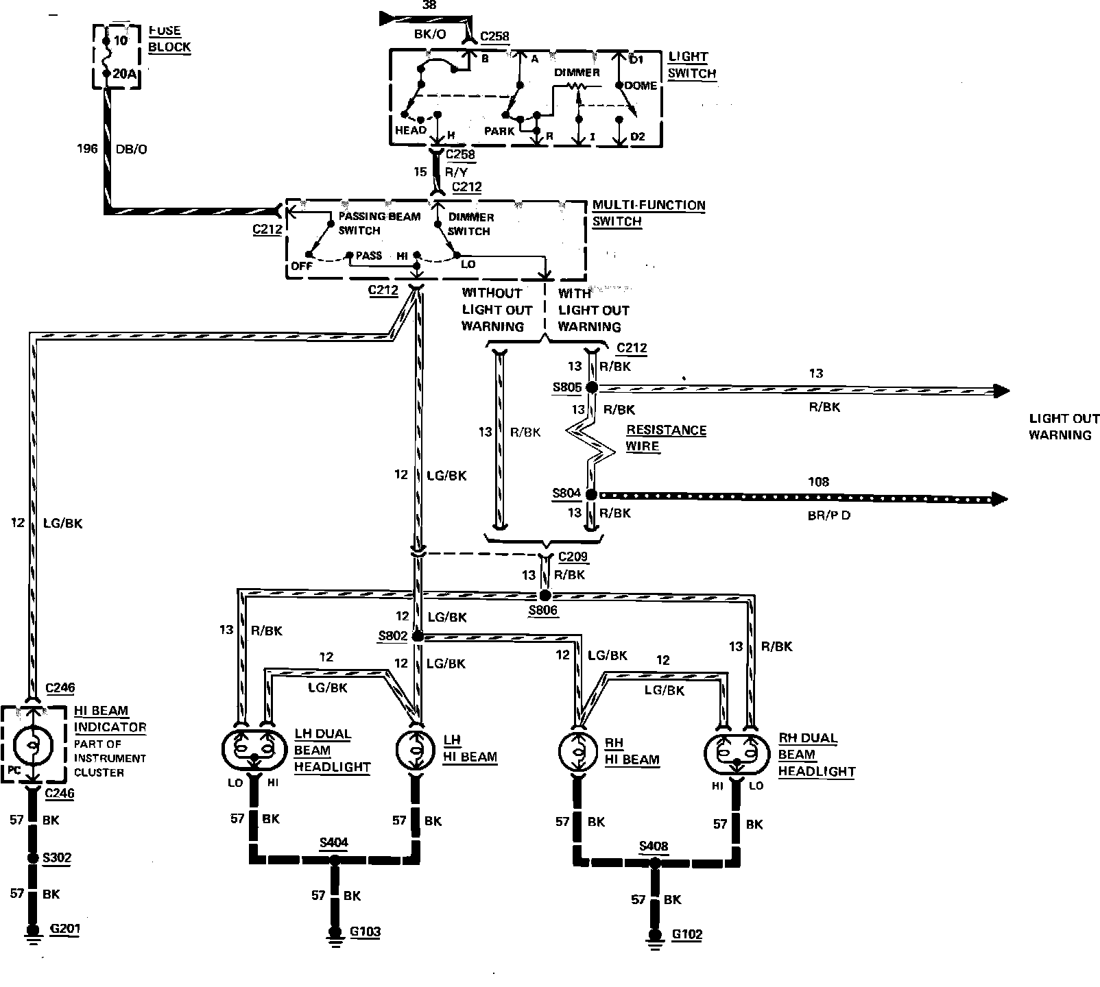 Fig. 38 Headlamp wiring circuit. 1983-84 Capri & Mustang: