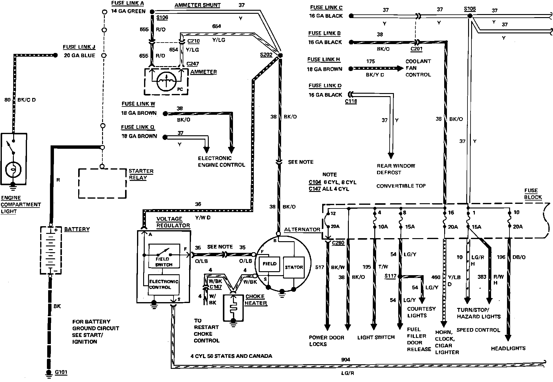 Fig. 20 Charging system & power distribution wiring circuit (Part 1 of 2). 1984 Capri & Mustang:
