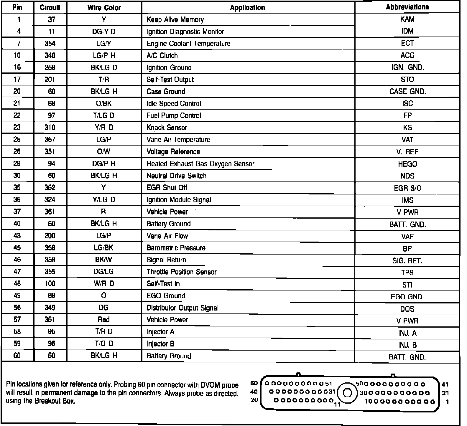 Fig. 54 EEC-IV Module Connector Pin Usage.Turbocharged EFI W/Automatic Transmission: