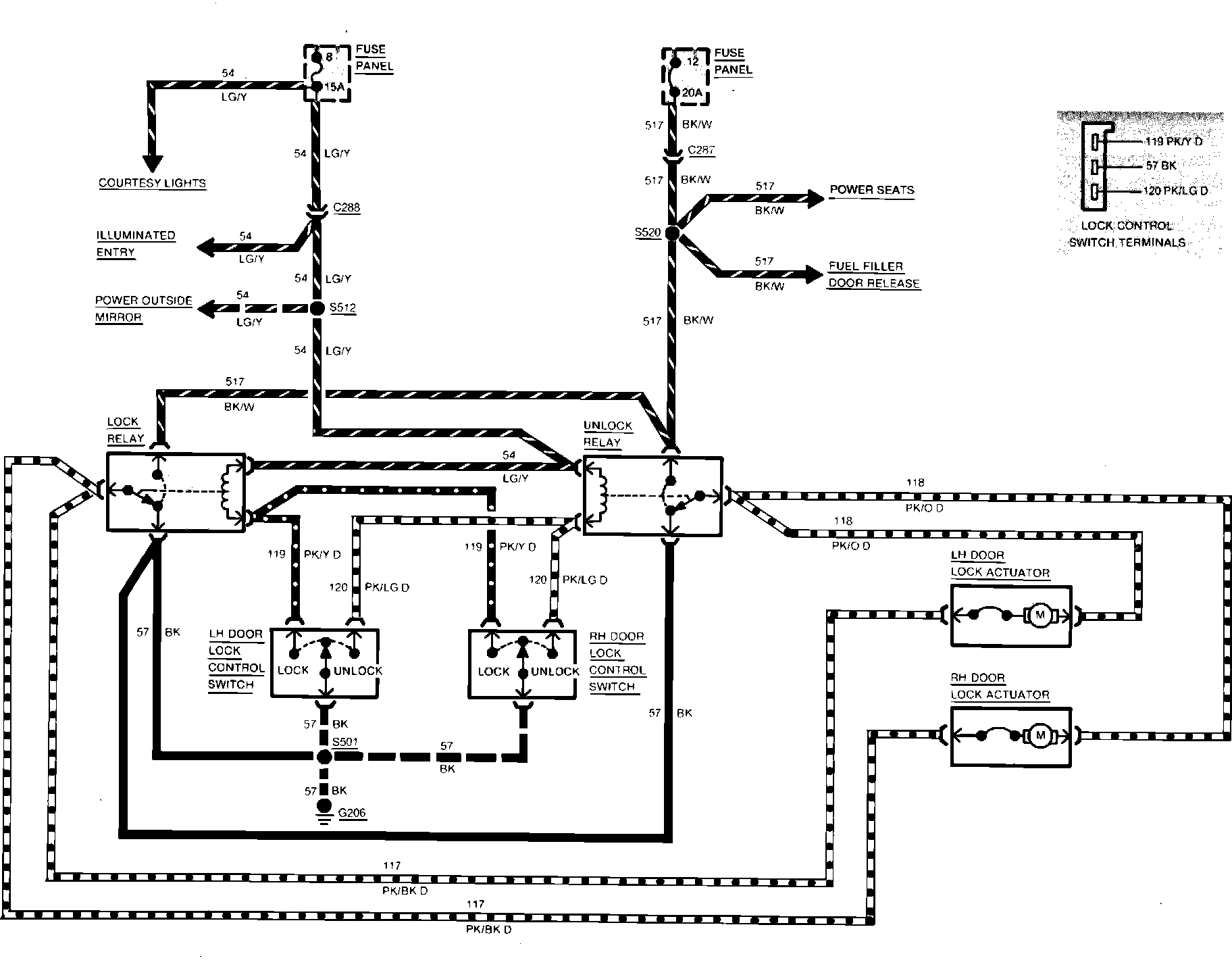 Fig. 76 Power Door Lock Wiring Circuit. 1984 Cougar & Thunderbird: