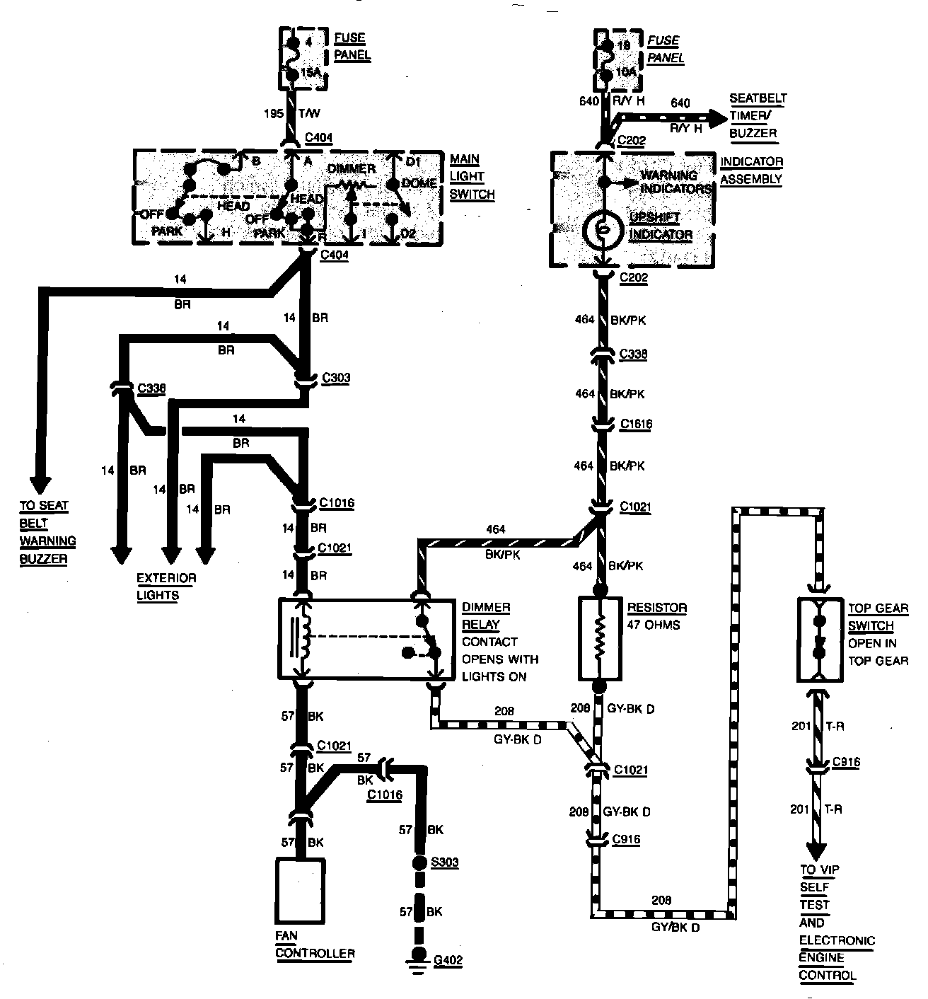 Fig. 32 Shift Indicator Wiring Circuit. 1984 Tempo & Topaz: