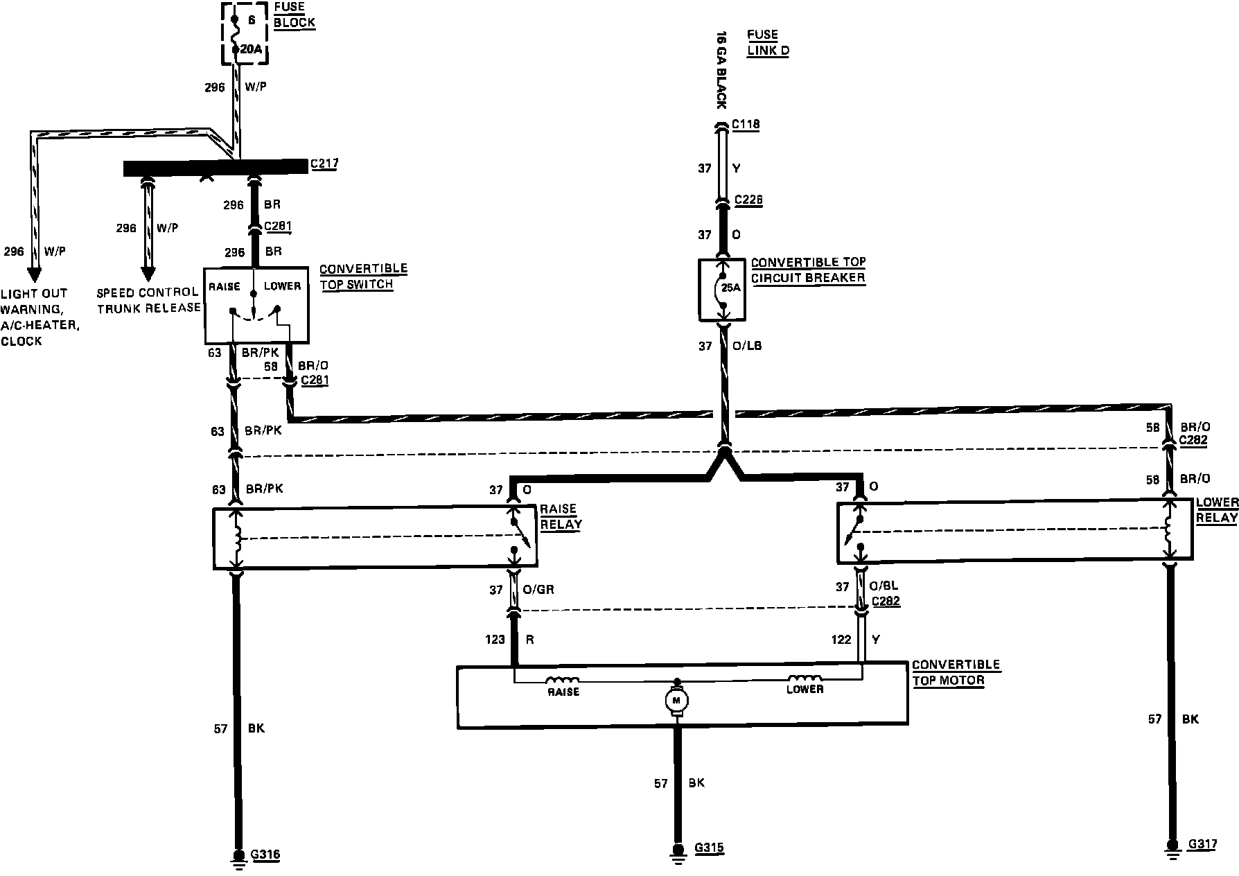 Fig. 14 Convertible Top Wiring Circuit. 1985: