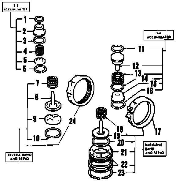 Accumulator, Reverse & Overdrive Band & Servo, AOD Model: