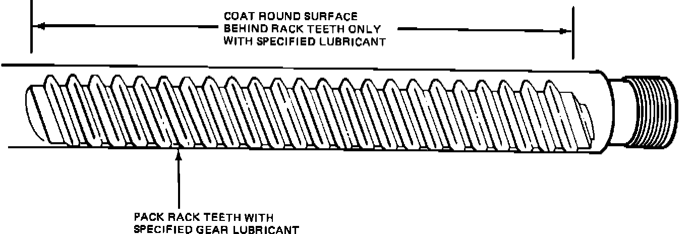 8. Pack rack teeth with steering gear lubricant (Figure 12). Apply a light coat of steering gear lubricant to the yoke contact area, back of the rack teeth.