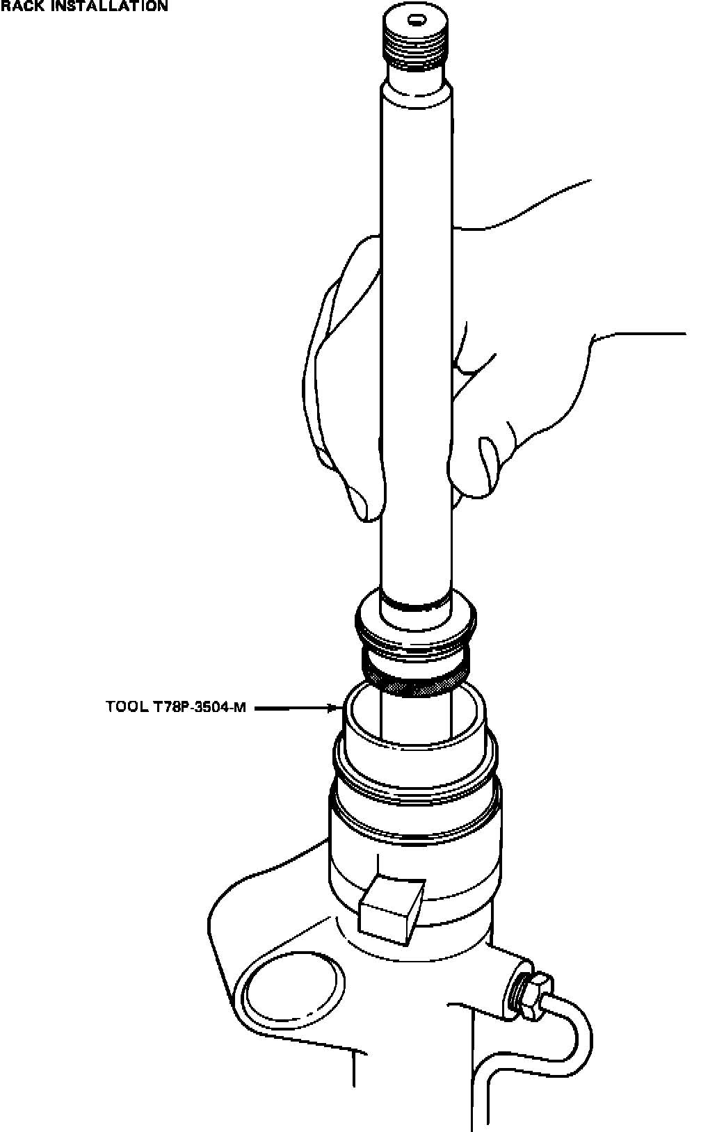 15. Thread the short protective sleeve, Tool T74P- 3504-J, over the threads on the right side of the rack (Step 6 of the Shop Manual). Apply power steering fluid to the protective sleeve.