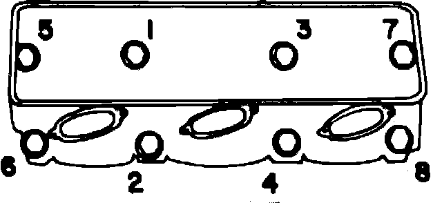 Tighten cylinder head bolts a little at a time in steps in the sequence shown in the illustrations. Final tightening should be to the torque specifications listed in the Engine Tightening table. After tightening the bolts to specifications, they should not be disturbed.