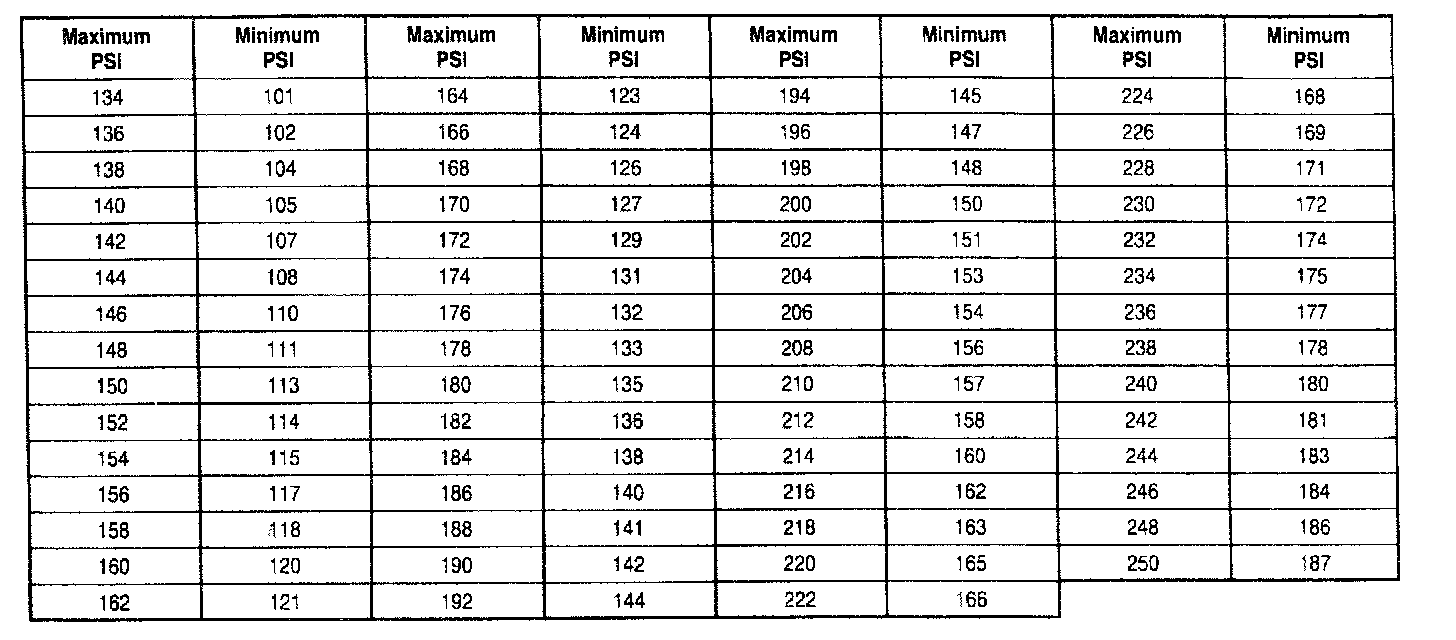 Compression Pressure Limit Chart: