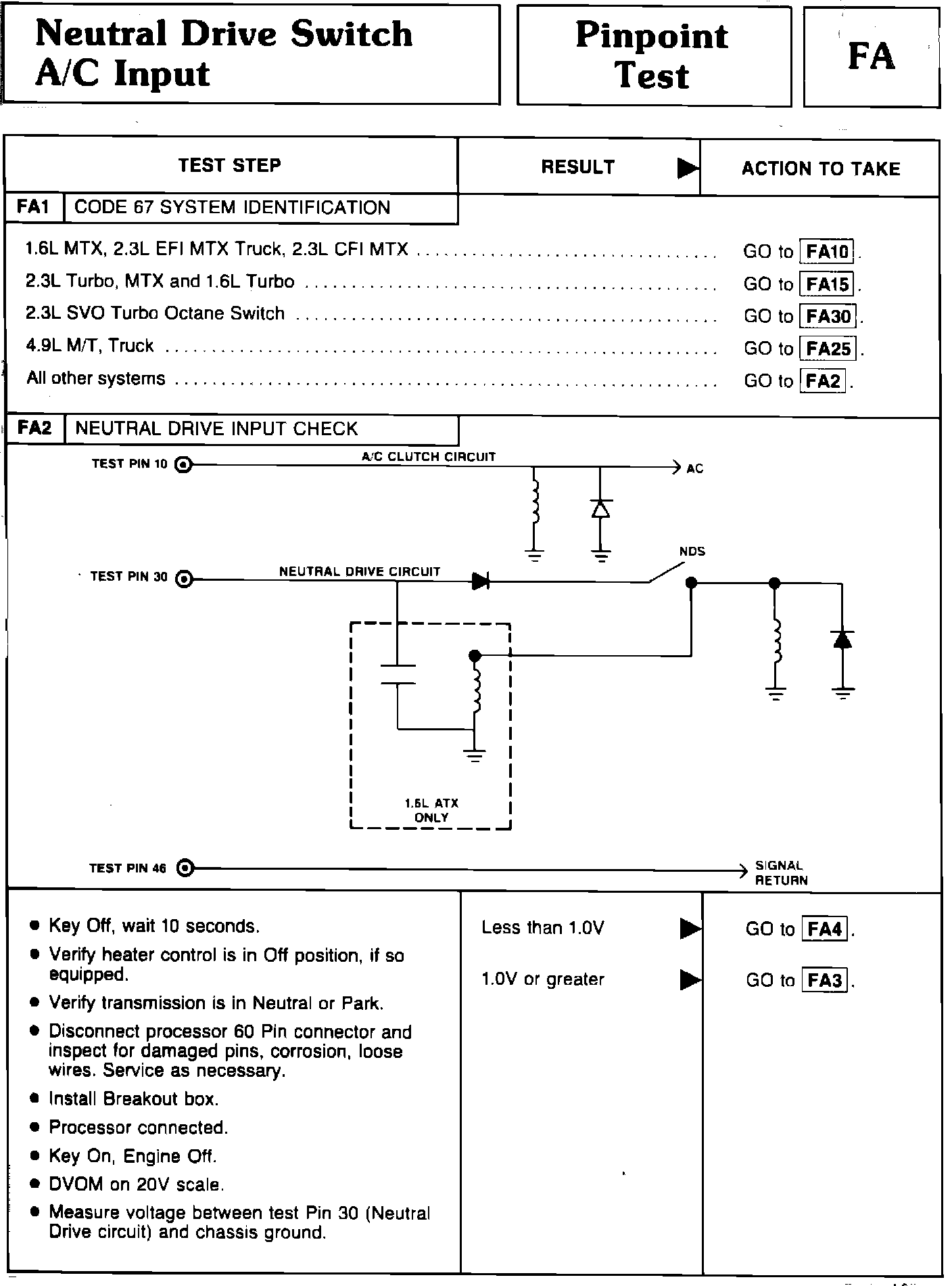 FA - Neutral Drive Switch A/C Input
