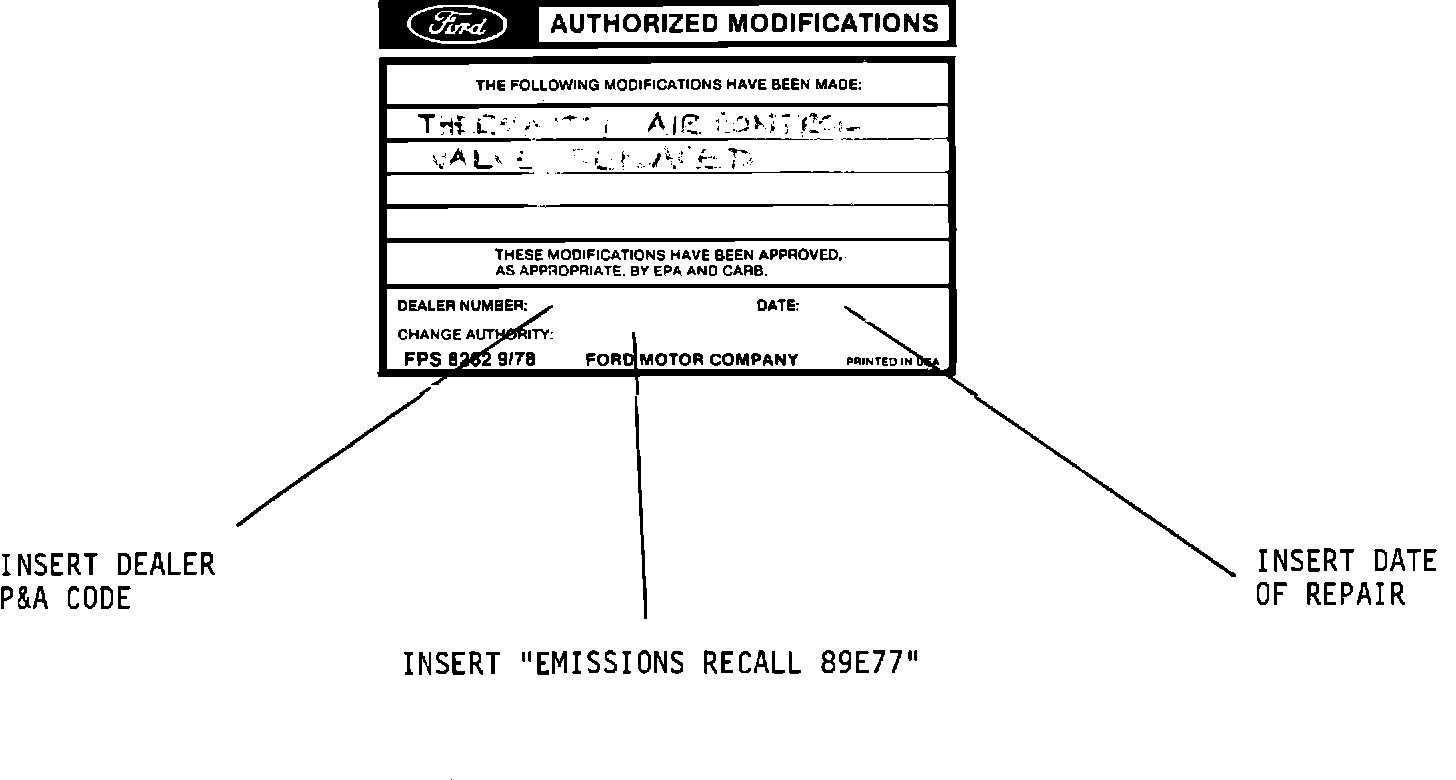 Replace the Air Control/Bypass Valve, hoses and clamps, Attach Diagnostic Procedure Information and Authorized Modifications Decals . . . . . . . . . . . . . . 0.5 His. Insert in Box "B" of Form 1864