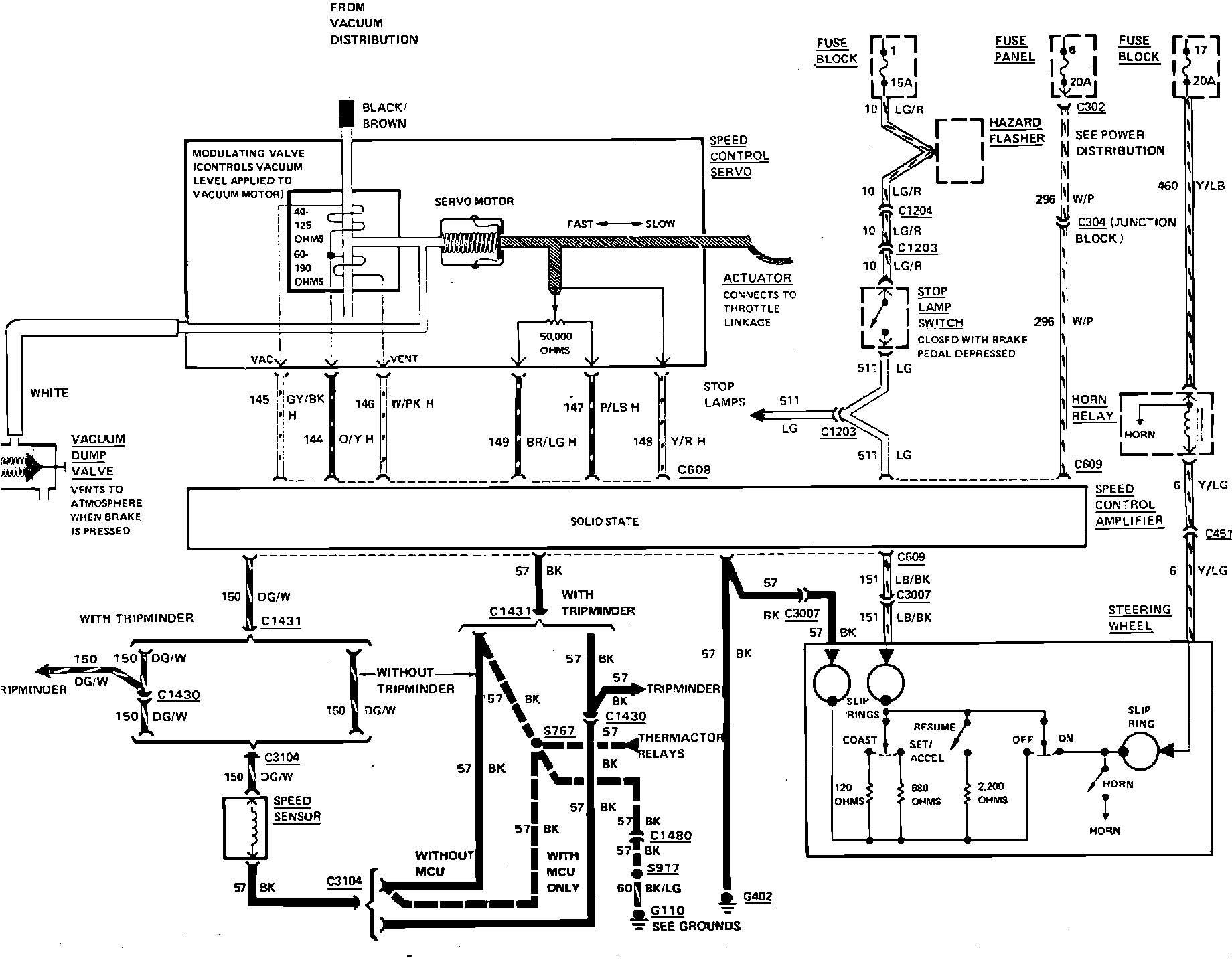 Fig. 5 Speed control wiring schematic (typical). 1986 Lincoln Continental, 1986---87 Ford & Mercury: