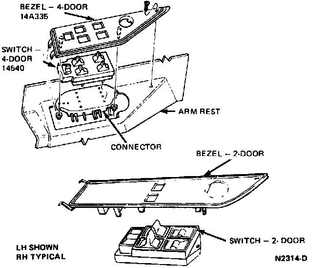 1. Remove screw from the front end of the bezel and lift bezel and switch away from the armrest.