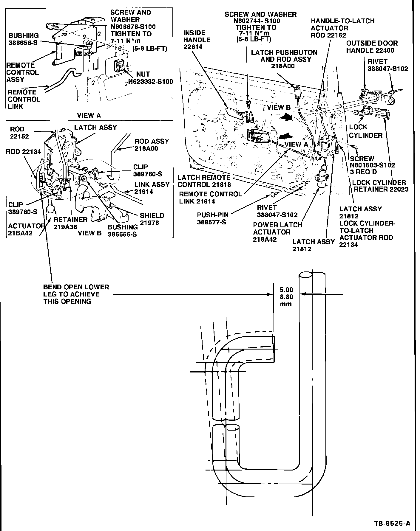 (See Figure 3.) This rework will permit the rod to move to the unlock position without interference with the latch anti-theft cover (reference Shop Manual, Section 44-16 for removal and installation instructions).