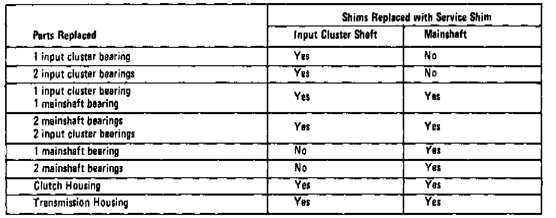 Whenever the preload bearing shims are replaced, a service shim should be installed in place of the original shim as outlined in the chart.