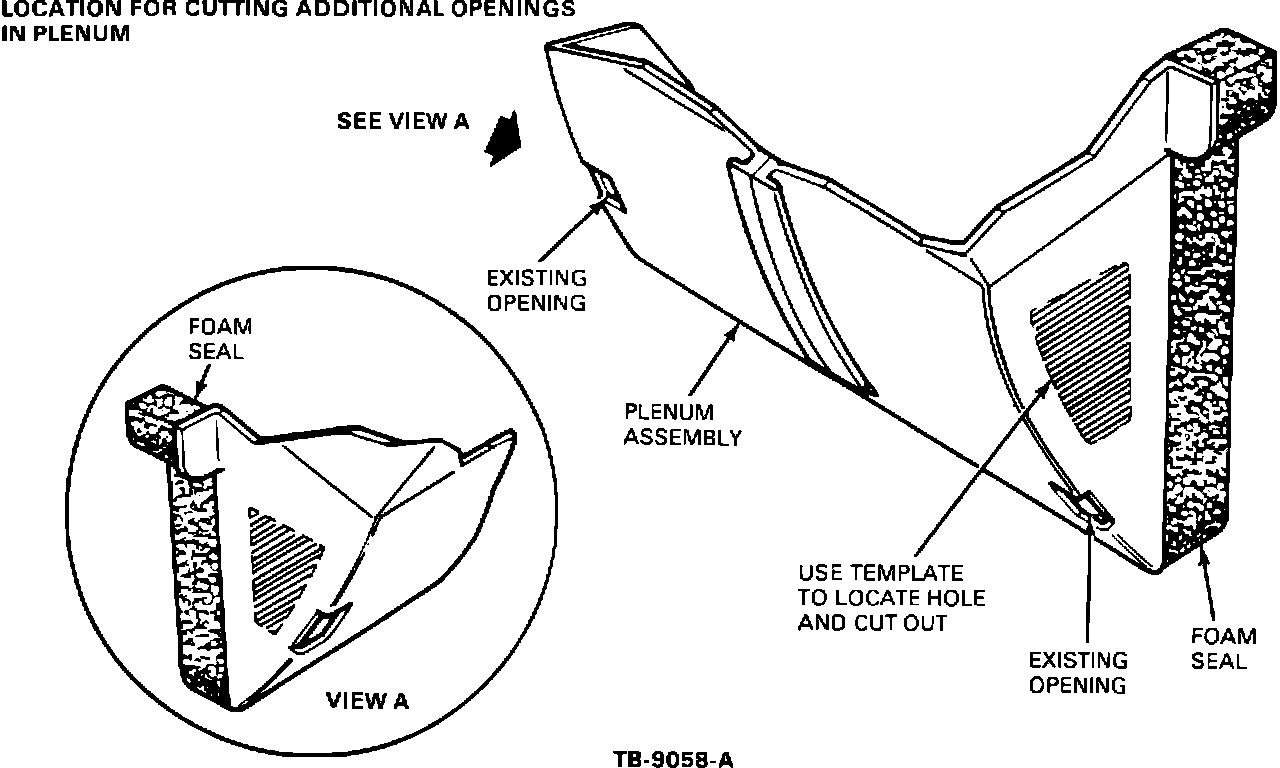 NOTE: THE 1986-87 TAURUS AND SABLE ARE THE ONLY CARS REQUIRING ADDED OPENINGS IN THE PLENUM. 1988-91 TAURUS/SABLE CARS COME EQUIPPED WITH THESE OPENINGS FROM THE FACTORY. THEY WERE INCORPORATED AS A DESIGN CHANGE TO THE PLENUM ASSEMBLY.