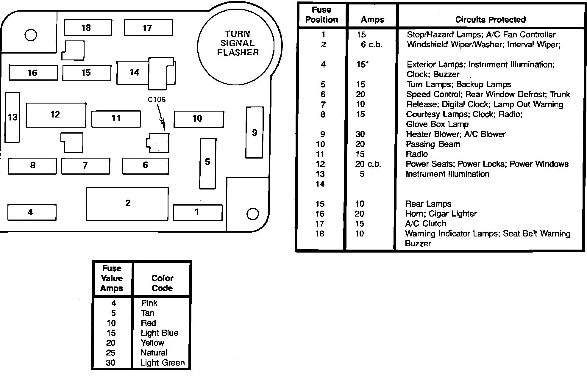 Fig. 1 Fuse Panel. Tempo & Topaz: