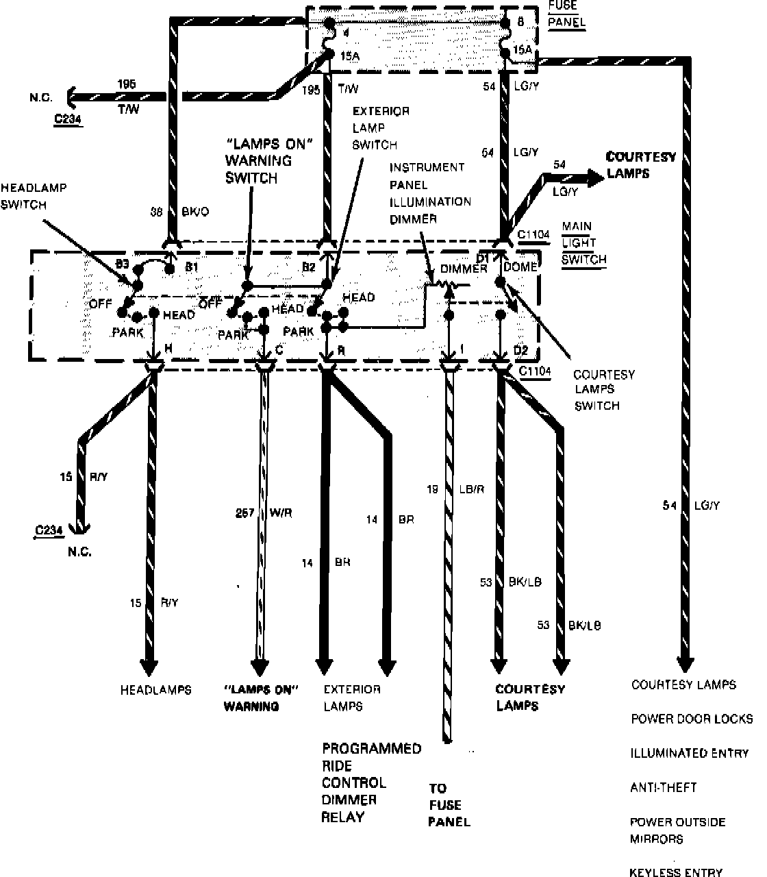 Fig. 64 Power Distribution Main Light Switch. Exc. Automatic Lamps: