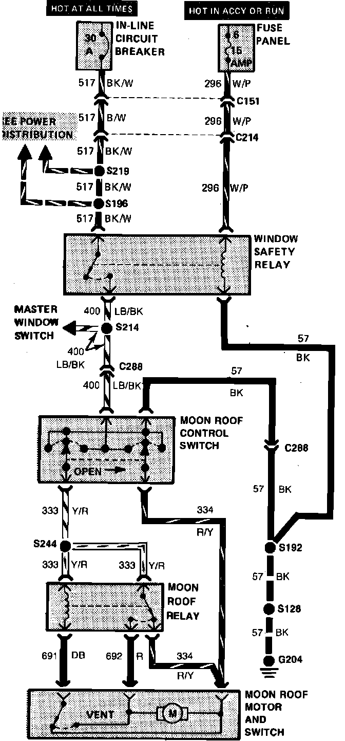 Fig. 60 Moon Roof Wiring Circuit: