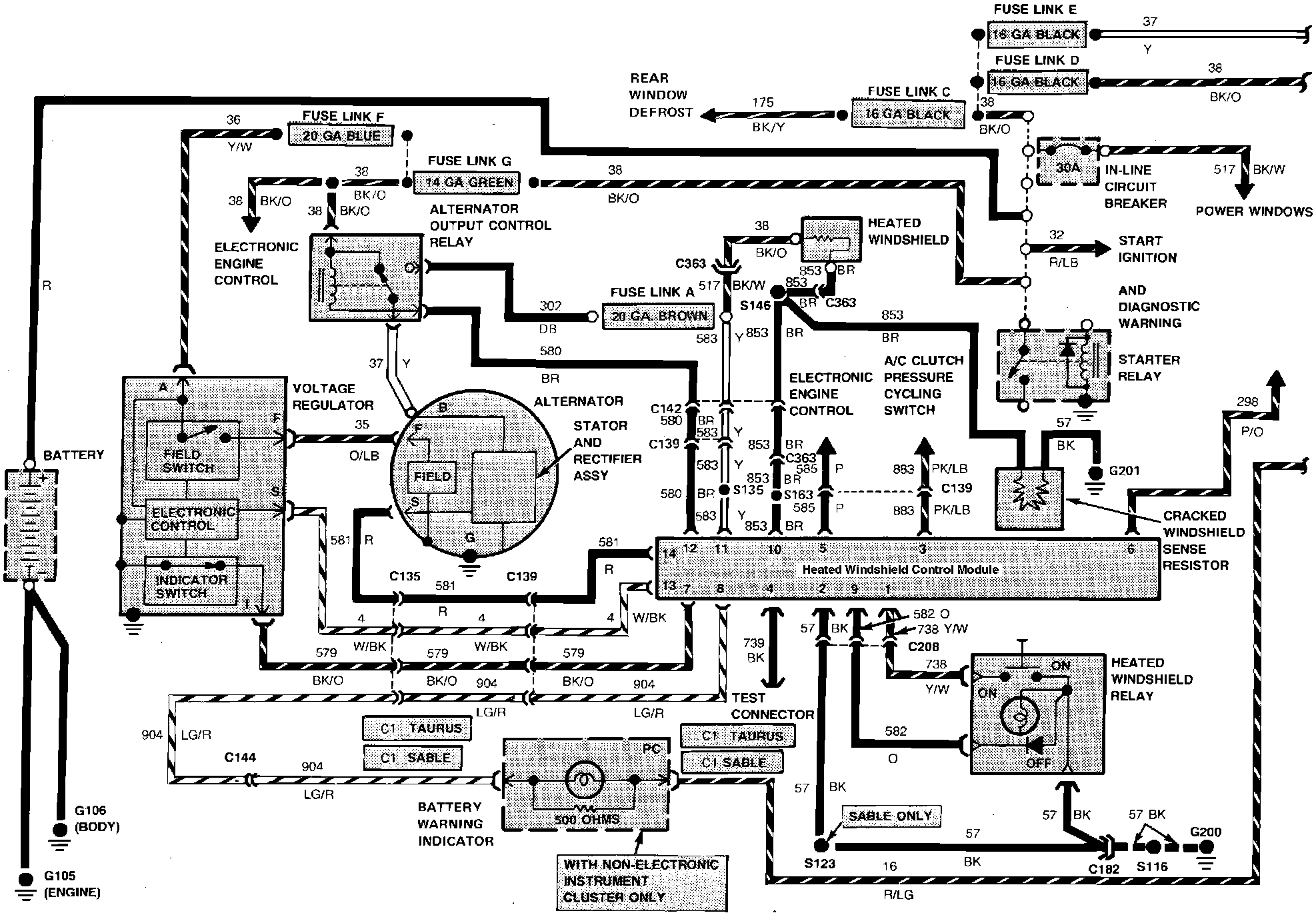 Charge/Power Distribution Wiring Circuit With Heated Windshield: