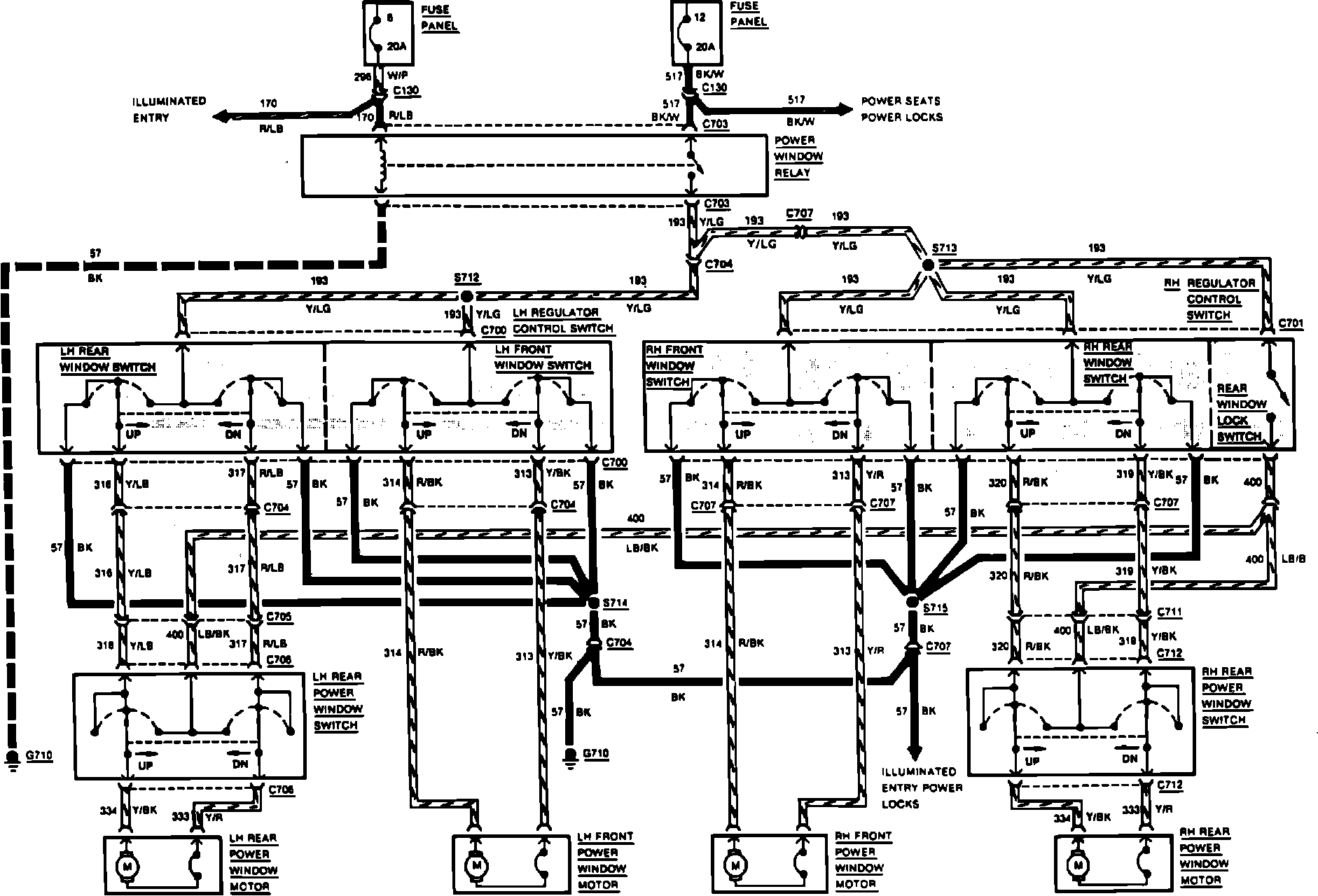 Fig. 39 Power Windows Wiring Circuit. 4 Door Models:
