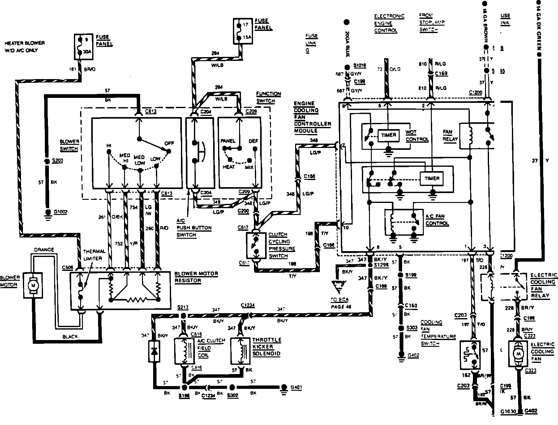 Fig. 4 Air Conditioning & Heater, Cooling Fan Wiring Circuit. Gasoline Engine: