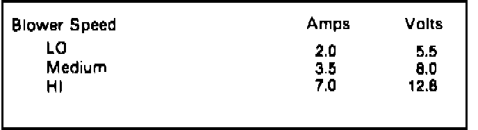 Fig. 36 Blower motor current draw & voltage test chart.: