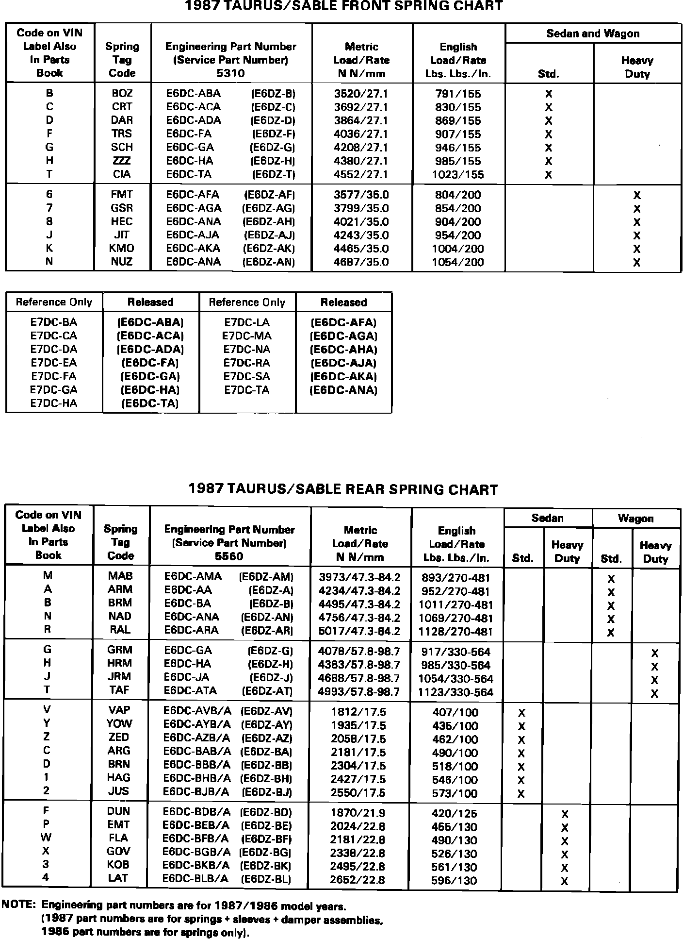 Front/Rear Suspension - Spring Application Charts