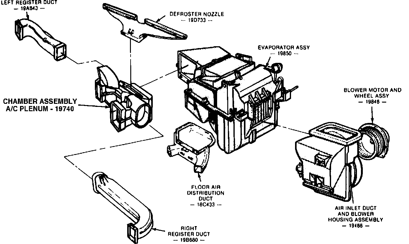 12. Remove one screw or nut retaining the bracket below evaporator case to dash panel.