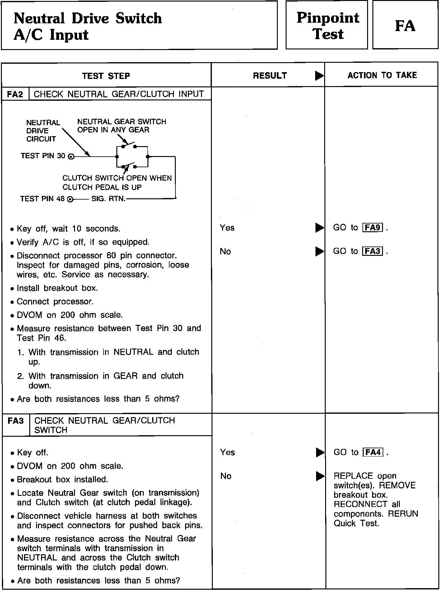 Pinpoint Test FA2 & FA3 - Neutral Drive Switch A/C Input: