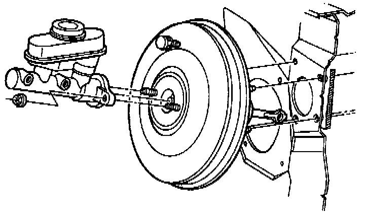 3. Position master cylinder over booster push rod and onto two studs on booster assembly.