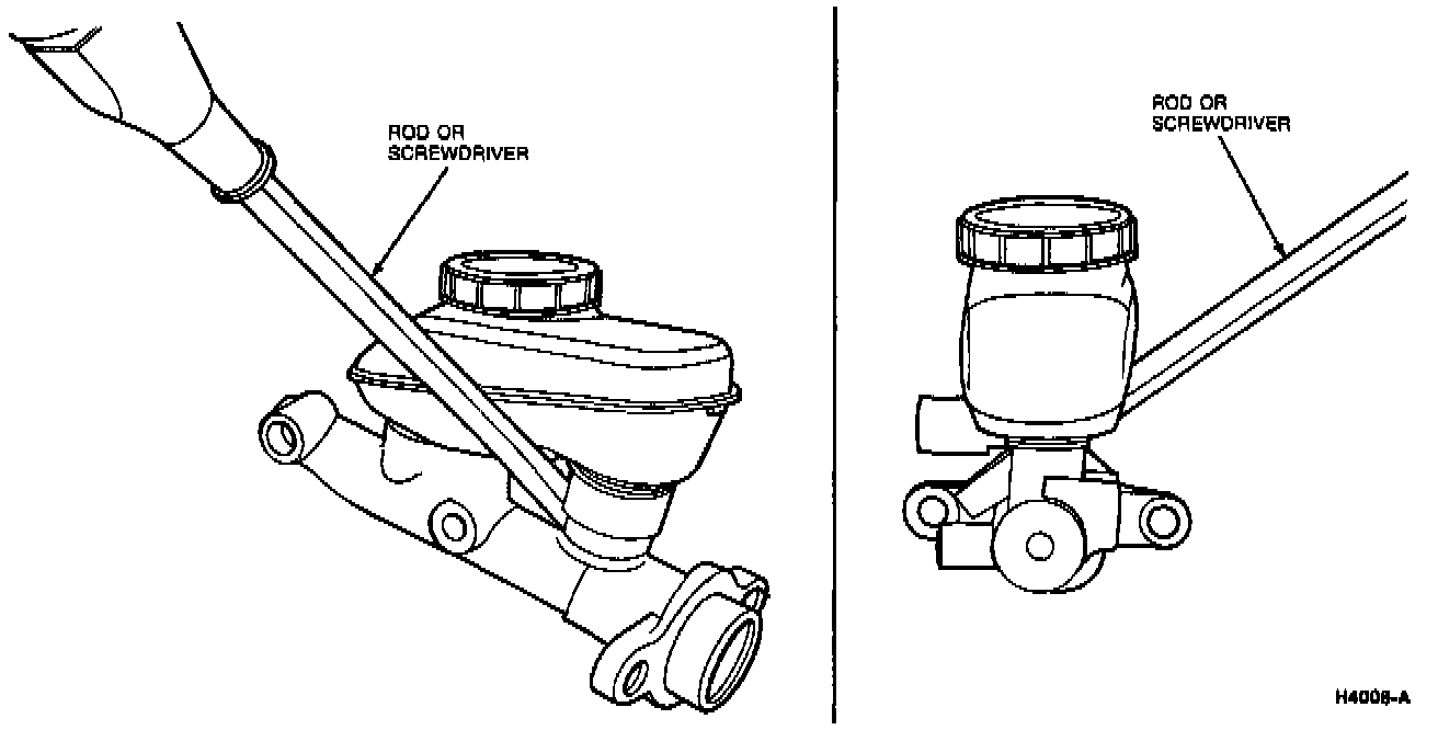b. Remove primary reservoir port from master cylinder by prying upward with rod or long screwdriver.