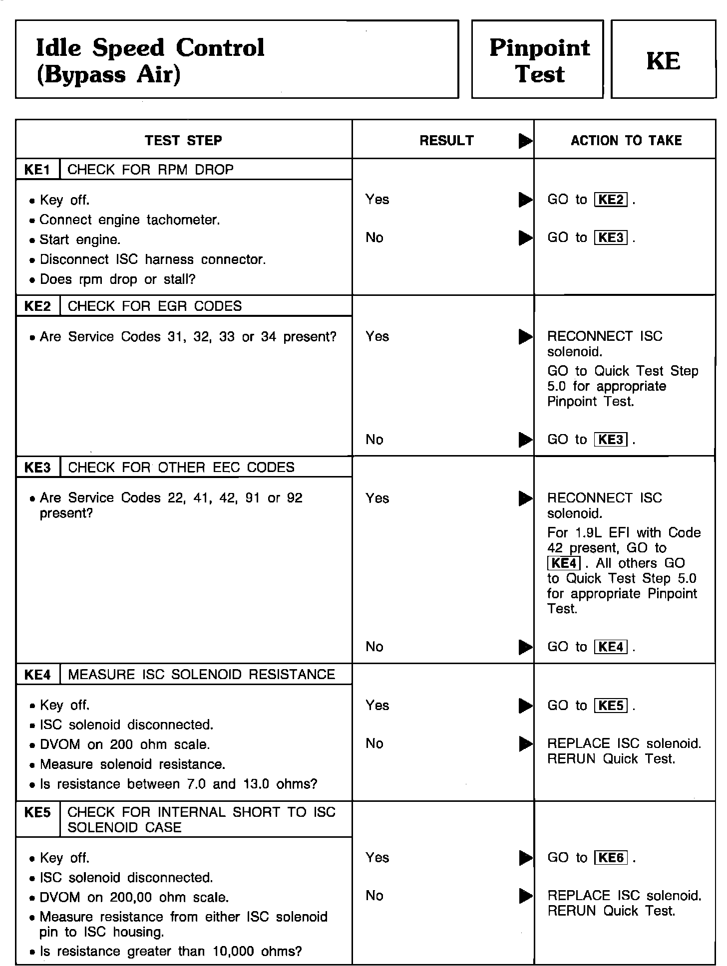 Pinpoint Test KE1 Thru KE5 - Idle Speed Control (Bypass Air):