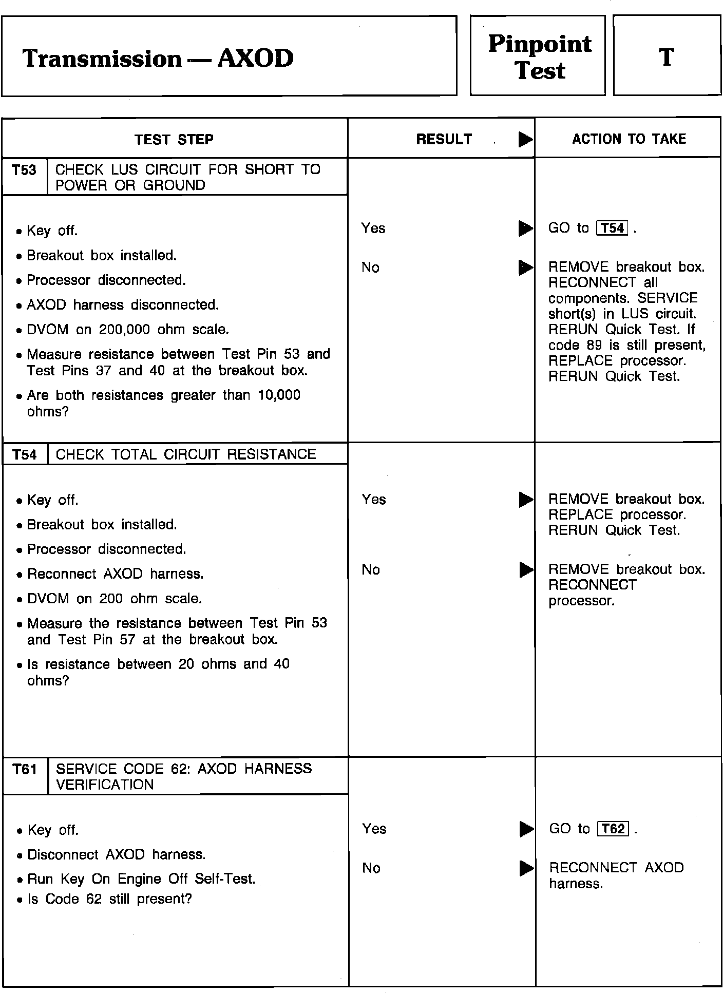 Pinpoint Test T53 Thru T61 - Transmission-AXOD: