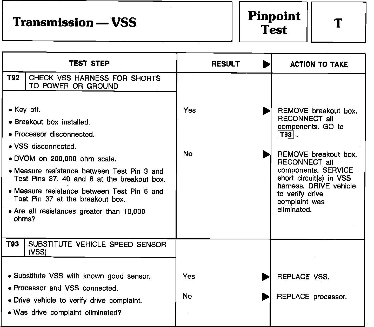 Pinpoint Test T92 & T93 - Transmission-VSS:
