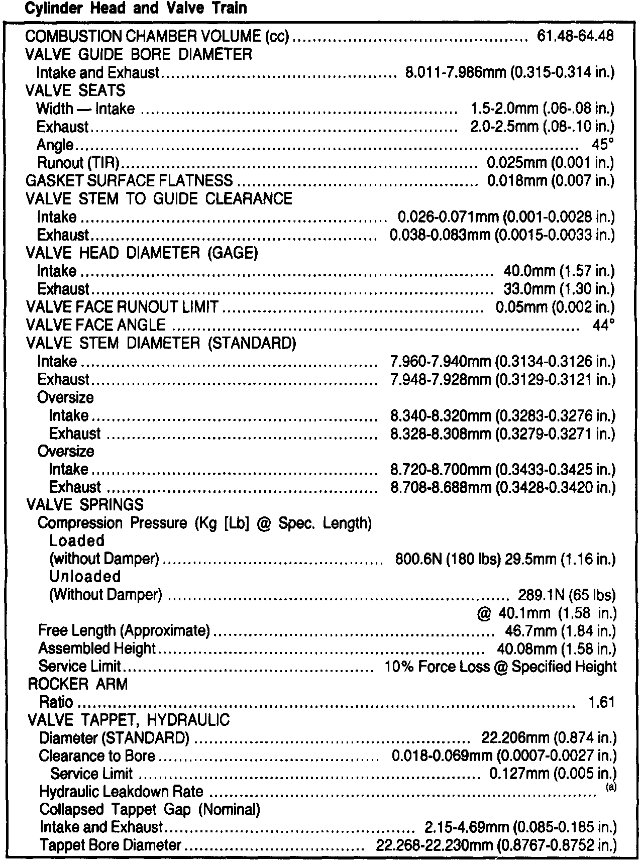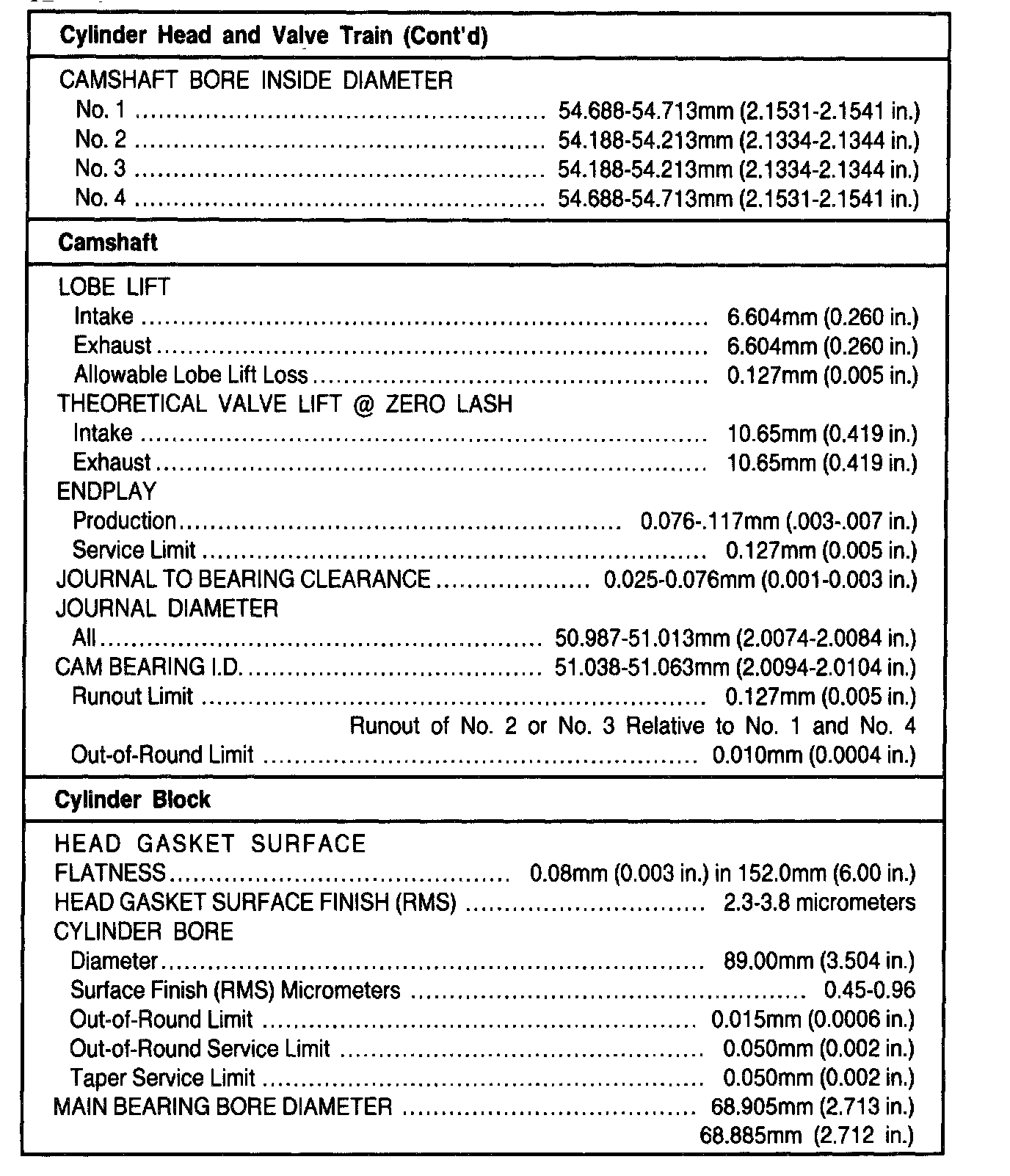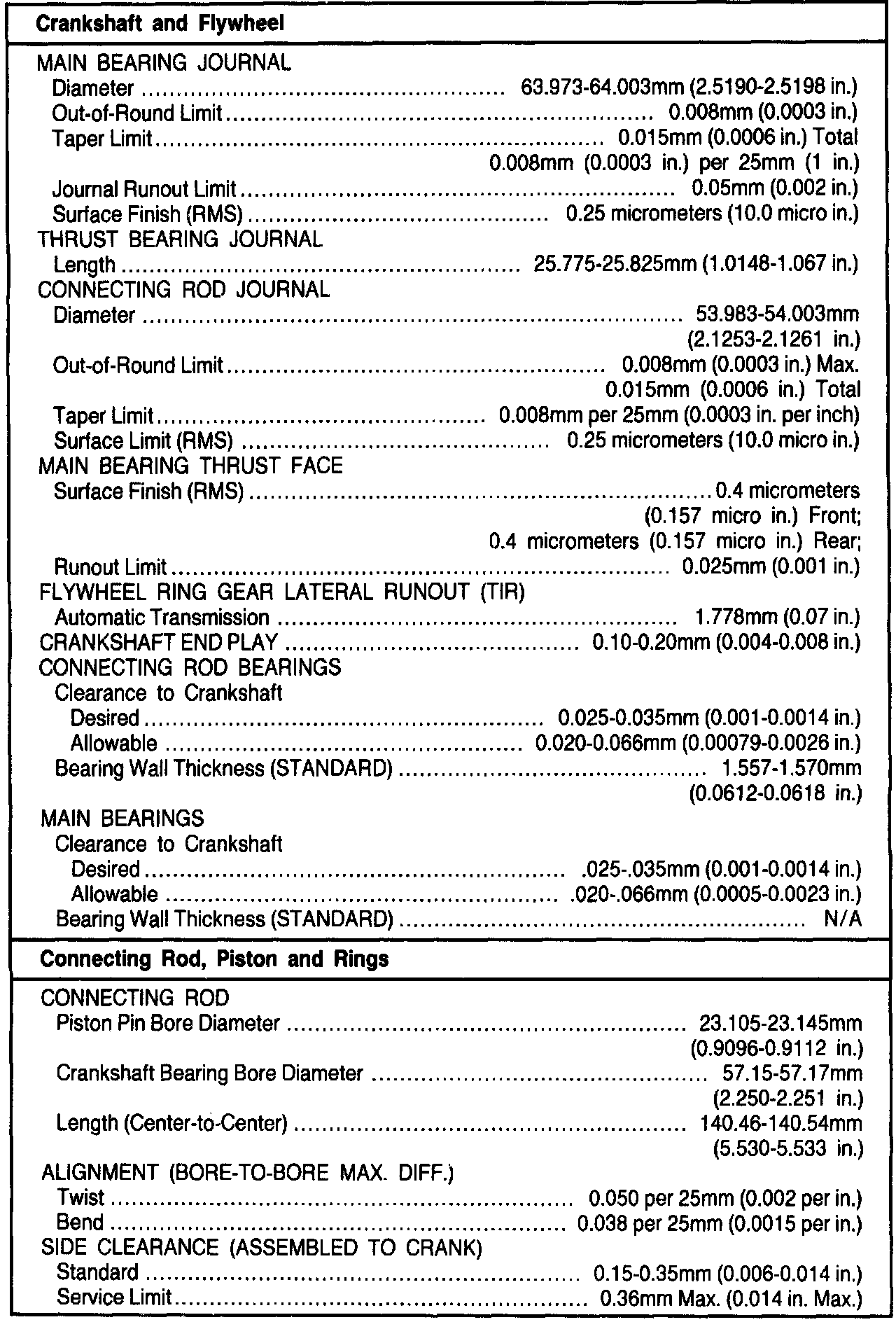 General Engine Specifications
