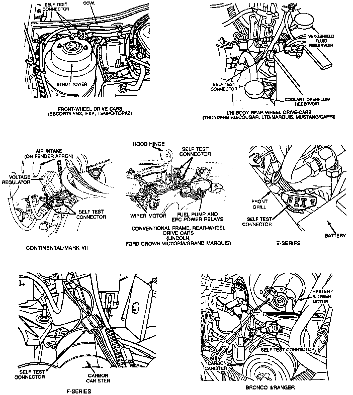 Fords Electronic Engine Control (EEC) system does not have the ability to be "read" as other systems do. (Example -- watching TPS voltage on a scan tool.) After the codes are retrieved, the system is best diagnosed with a tool called a break-out box. This ties into the computer system and checks the sensors and ground circuits using a DVOM.