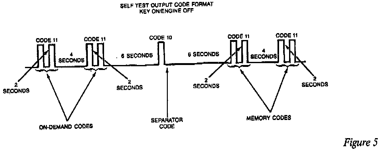 Turn the key ON... If diesel powered, depress the throttle to the floor for entire test! The processor will run its own self diagnostics and output "hard codes" on your voltmeter. (Figure 4)