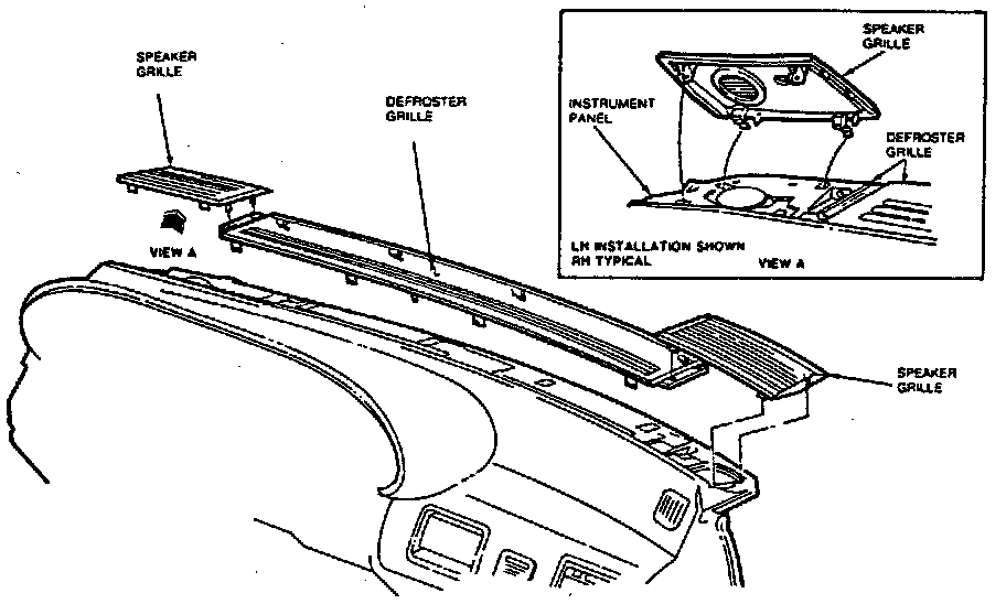 Fig. 53 Removing Defroster & Speaker Grilles, Sable.: