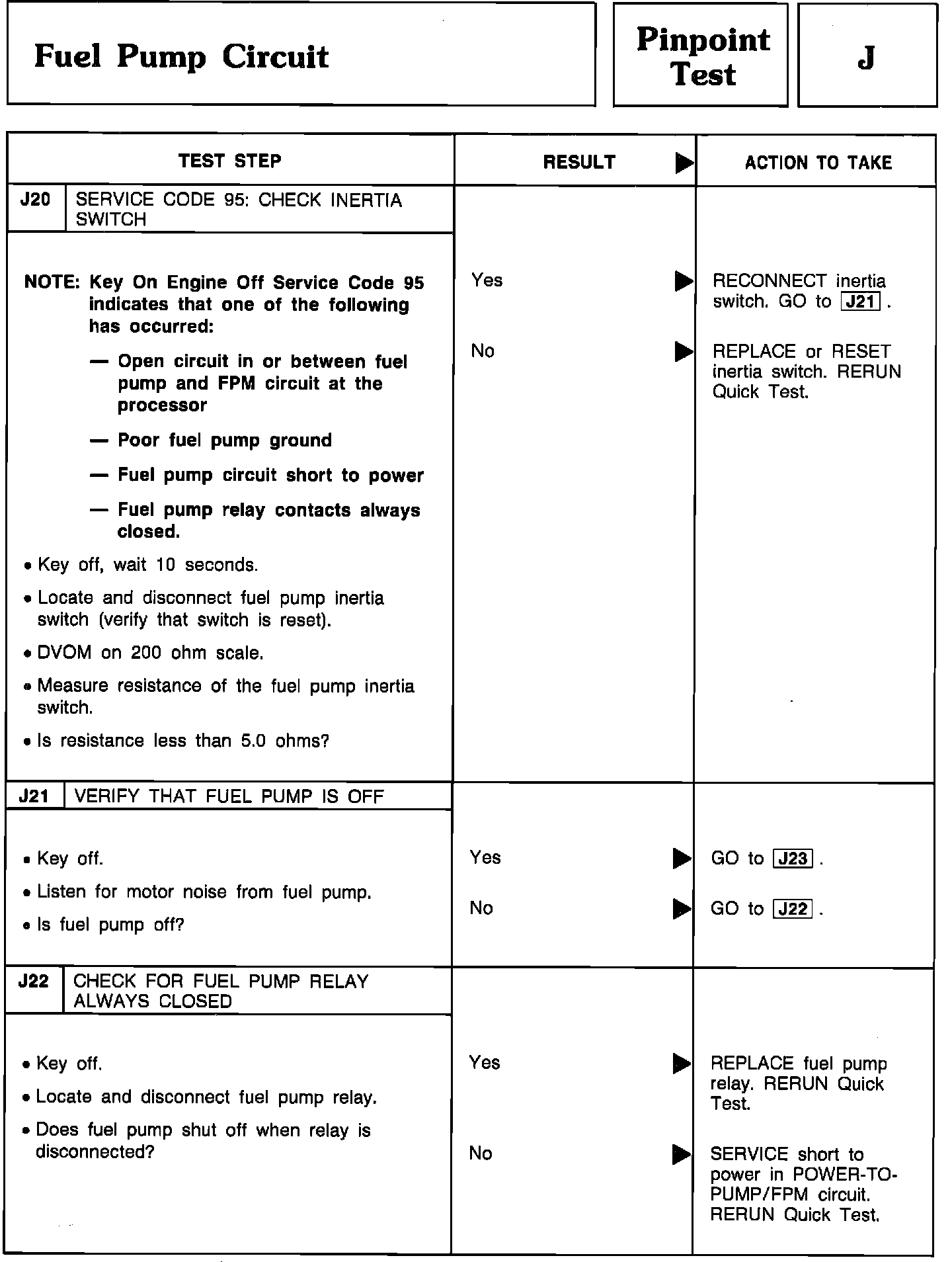 Pinpoint Test J20 Thru J22 - Fuel Pump Circuit: