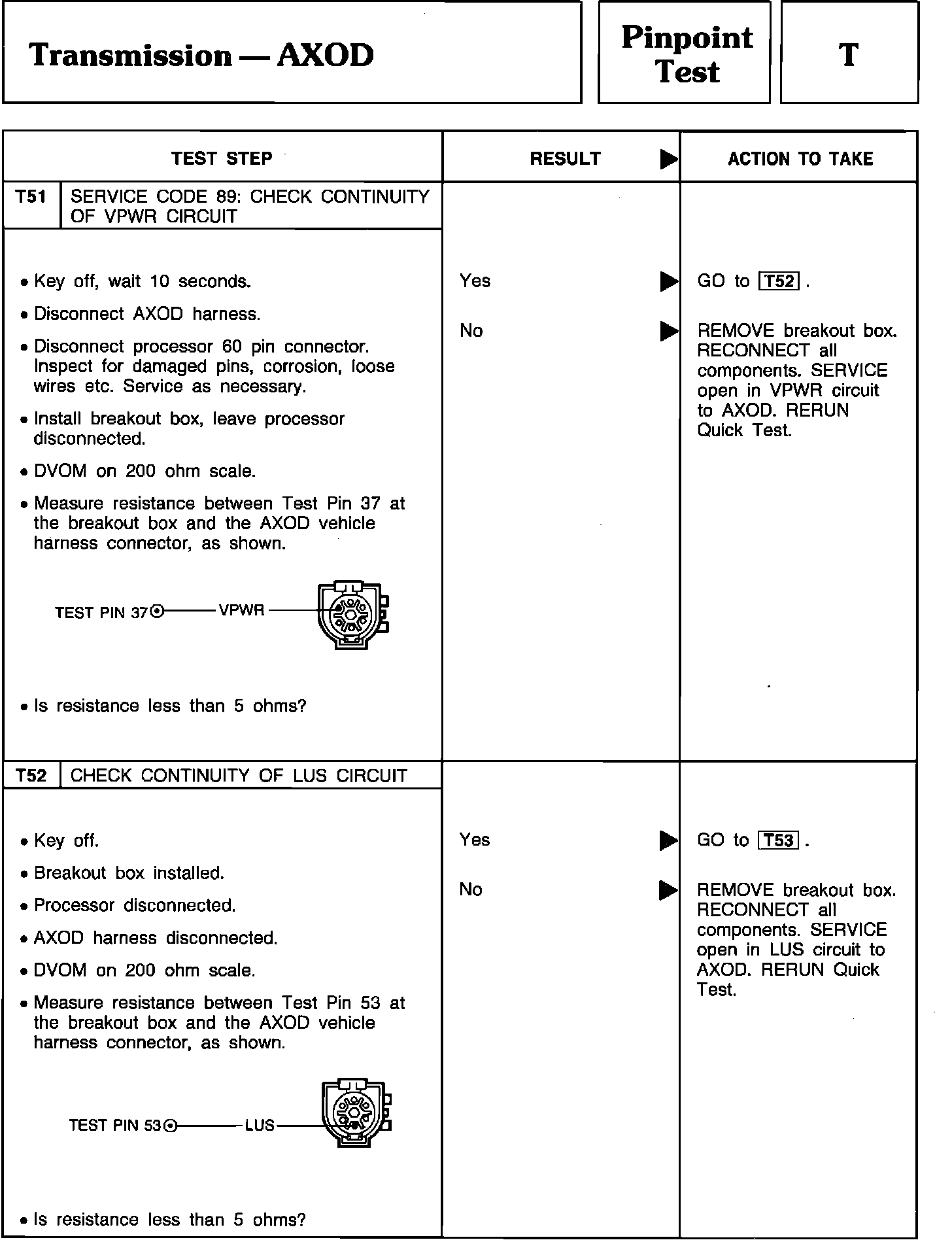 Pinpoint Test T51 & T52 - Transmission-AXOD: