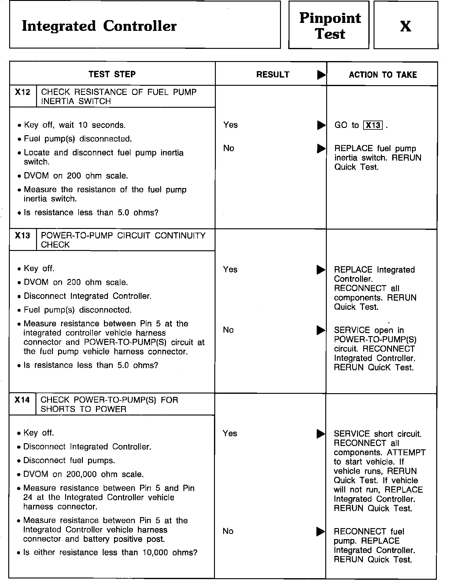 Pinpoint Test X12 Thru X14 - Integrated Controller:
