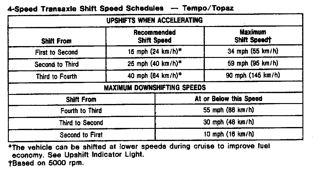 MTX 4-spd M/T, Shift Speeds (Tempo/Topaz):